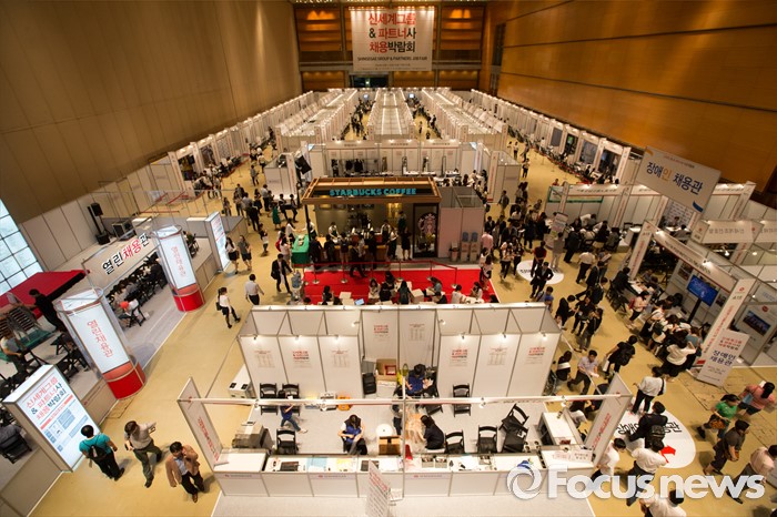 (서울=포커스뉴스) 21일 오후 서울 강남구 코엑스 D2홀에서 열린 신세계그룹&파트너사 채용박람회에서 구직자들이 희망 부스를 둘러보고 있다.