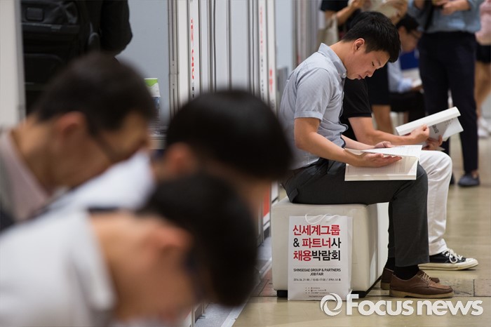 (서울=포커스뉴스) 21일 오후 서울 강남구 코엑스 D2홀에서 열린 신세계그룹&파트너사 채용박람회에서 구직자들이 상담을 기다리고 있다.