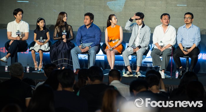 21일 서울 종로구 나인트리 컨벤션에서 영화 '부산행'의 제작보고회가 열렸다. 현장에는 영화의 메가폰을 잡은 연상호 감독을 비롯해 공유, 정유미, 마동석, 최우식, 안소희, 김의성이 참석했다.