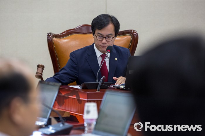 (서울=포커스뉴스) 김영우 국회 국방위원회 위원장이 21일 오전 서울 여의도 국회에서 열린 전체회의에 참석해 의사봉을 두드리고 있다.