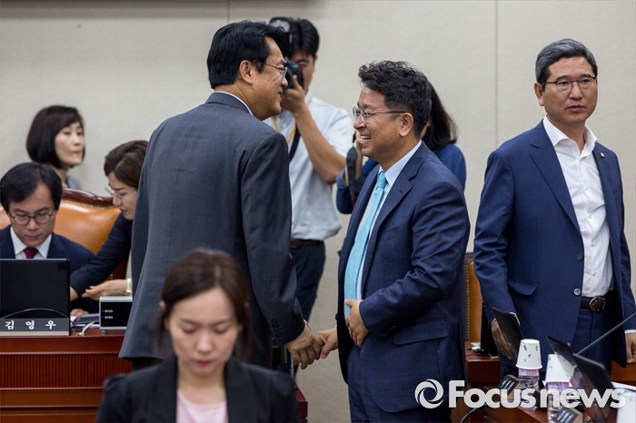 | △ 대화 나누는 정진석 위원-이철희 간사 |