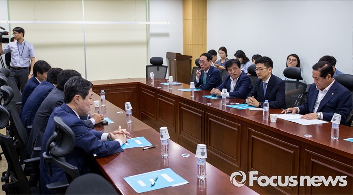 (서울=포커스뉴스) 동남권 신공항 입지발표를 앞두고 발표 중계방송 시청을 위해 모인 새누리당 김세연, 김도읍 등 부산지역 의원들이 21일 오후 서울 여의도 국회의원회관에서 신공항 선정 발표를 기다리고 있다.