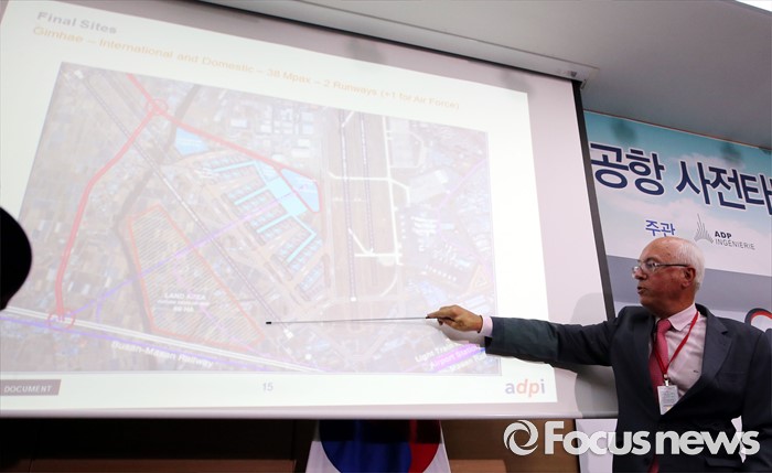 (세종=포커스뉴스) 장 마리 슈발리에 프랑스 파리공항공단자회사 ADPi 수석엔지니어가 21일 오후 세종시 정부세종청사 국토교통부 브리핑실에서 열린 동남권 신공항 타당성 검토 연구 최종 보고회에서 입지선정 결과를 발표하고 있다.
