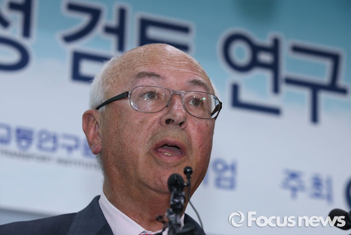 (세종=포커스뉴스) 장 마리 슈발리에 프랑스 파리공항공단자회사 ADPi 수석엔지니어가 21일 오후 세종시 정부세종청사 국토교통부 브리핑실에서 열린 동남권 신공항 타당성 검토 연구 최종 보고회에서 입지선정 결과를 발표하고 있다.