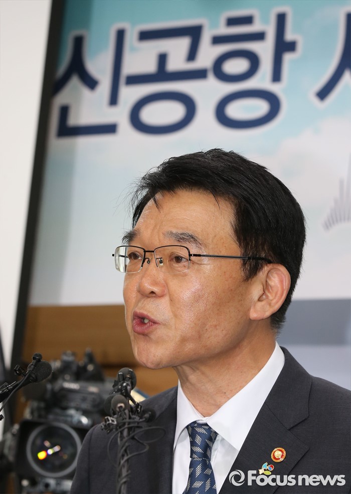 (세종=포커스뉴스) 강호인 국토교통부장과이 21일 오후 세종시 정부세종청사 국토교통부 브리핑실에서 열린 동남권 신공항 타당성 검토 연구 최종 보고회에서 입지선정 결과에 따른 정부입장을 밝히고 있다.