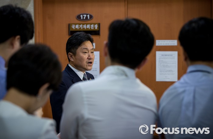 (서울=포커스뉴스) 21일 오후 서울 여의도 국회 정론관에서 최인호 더불어민주당 의원이 영남권 신공항 결과 발표 관련 기자회견을 하고 있다.