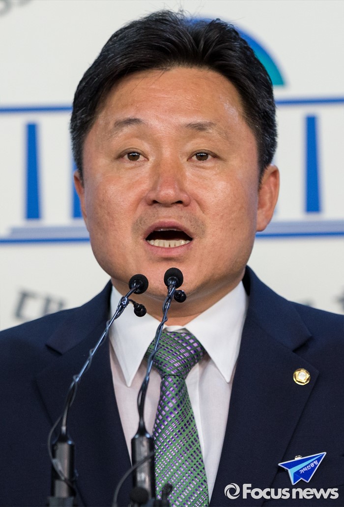 (서울=포커스뉴스) 21일 오후 서울 여의도 국회 정론관에서 최인호 더불어민주당 의원이 영남권 신공항 결과 발표 관련 기자회견을 하고 있다.