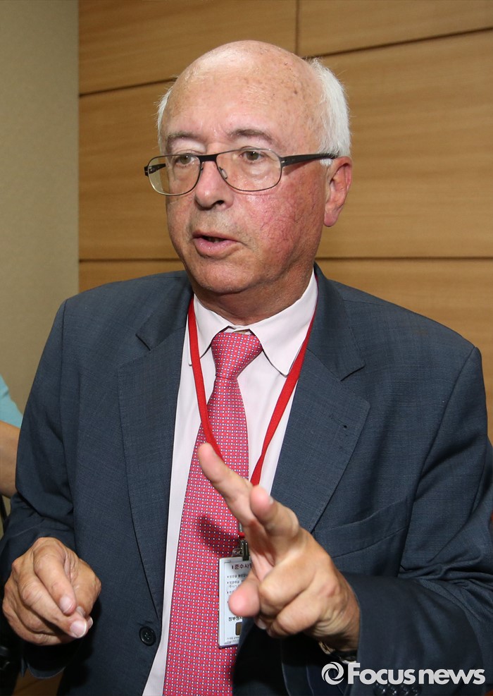 (세종=포커스뉴스) 장 마리 슈발리에 프랑스 파리공항공단자회사 ADPi 수석엔지니어가 21일 오후 세종시 정부세종청사 국토교통부 브리핑실에서 열린 동남권 신공항 타당성 검토 연구 최종 보고회에서 입지선정 결과 발표를 마치고 취재진의 질문에 답변하고 있다.