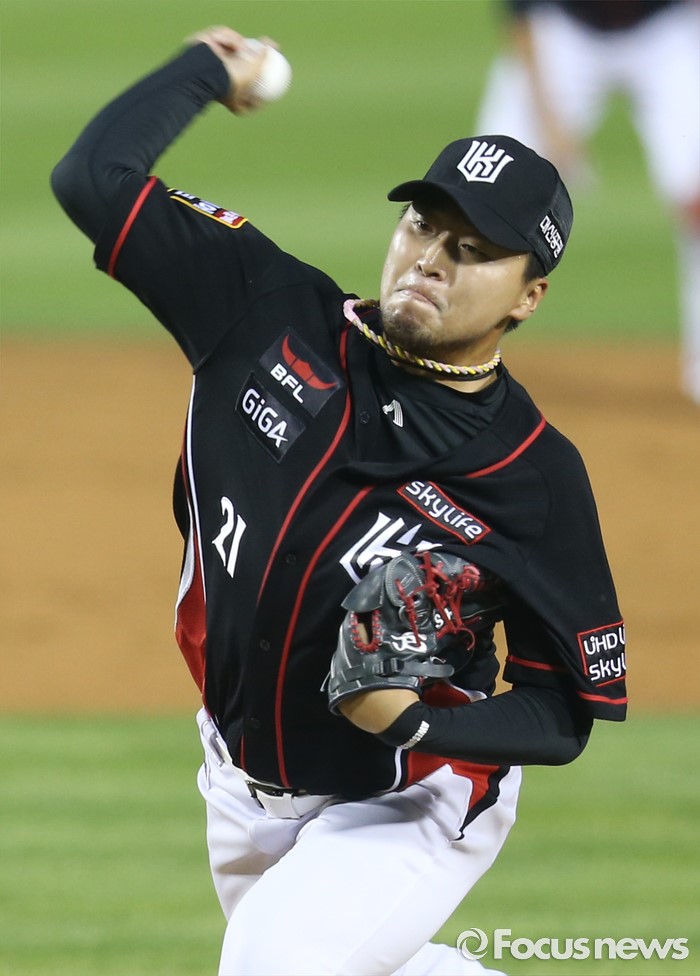 (서울=포커스뉴스) 12일 서울 잠실구장에서 열린 2016 프로야구 kt-두산 경기 4회말 무사 1,3루에서 교체 투입된 kt 투수 이상화가 투구하고 있다.