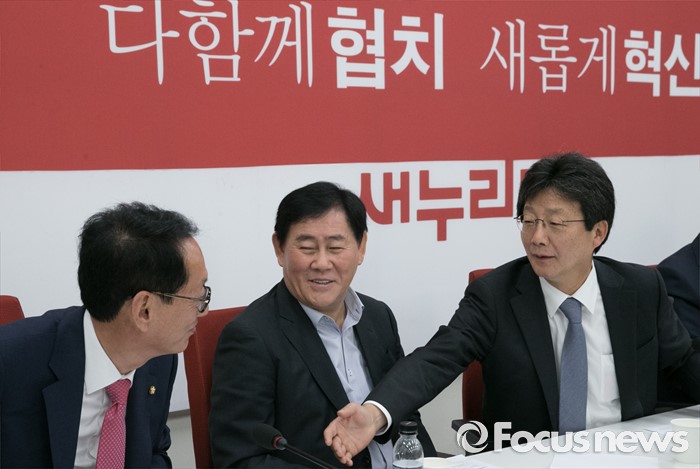 (서울=포커스뉴스) 22일 오전 서울 여의도 국회에서 열린 새누리당 신공항 관련 5개 시도 중진의원 간담회에 참석한 유승민(오른쪽부터), 최경환 의원, 김도읍 원내수석부대표가 대화하고 있다.