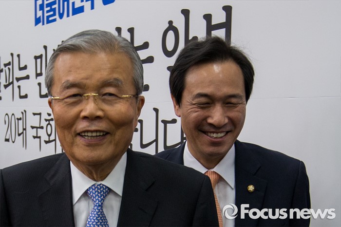 (서울=포커스뉴스) 김종인 더불어민주당 비상대책위 대표와 우상호 원내대표가 22일 오전 서울 여의도 국회에서 열린 비상대책위원회의를 마친 뒤 회의실을 나서고 있다.