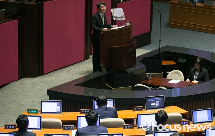 (서울=포커스뉴스) 22일 오전 서울 여의도 국회에서 열린 343회 국회(임시회) 5차 본회의에 참석한 안철수 국민의당 상임공동대표의 교섭단체 대표연설을 하고 있다. 검찰 소환을 하루 앞둔 같은 당 김수민 의원은 이날 본회의에 불참했다.