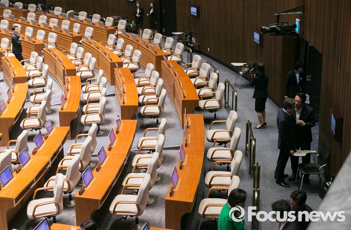 (서울=포커스뉴스) 22일 오전 서울 여의도 국회에서 열린 343회 국회(임시회) 5차 본회의에 참석한 정진석(오른쪽) 새누리당 원내대표와 김무성 전 대표가 대화하고 있다.