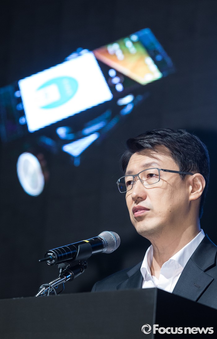 (서울=포커스뉴스) 22일 오전 서울 마포구 팬택 상암사옥에서 열린 'SKY, IM-100' 공개행사에 참석한 문지욱 팬택 사장이 기조 연설을 하고 있다.