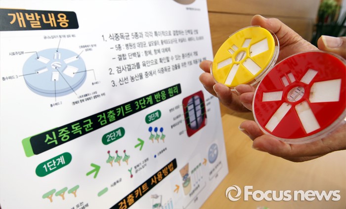 식중독균 검출키트는 농진청과 KAIST, 전북대가 공동으로 개발, 식중독균 5종을 1시간 안에 동시에 검출 할 수 있으며, 다이얼 모양의 종이 기반 감지기에 시료를 넣고 돌리면 중앙의 원 안에 청색 선이 보이면서 식중독균을 확인할 수 있다.
