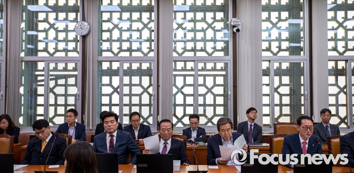 (서울=포커스뉴스) 22일 오전 서울 여의도 국회에서 열린 '외교통일위원회 전체회의'에 새누리당 위원들이 참석 하고 있다. 왼쪽부터 윤상현 위원, 원유철 위원, 서청원 위원, 김무성 위원, 김도읍 위원.