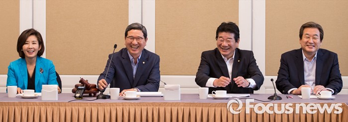 (서울=포커스뉴스)김학용(왼쪽 두번째) 새누리당 의원이 22일 오후 서울 여의도 국회에서 열린 비박계 새누리당 의원들이 주축이 된 '대한민국 미래혁신포럼' 창립 총회에서 발언하고 있다. 오른쪽 첫번째는 김무성 새누리당 전 대표