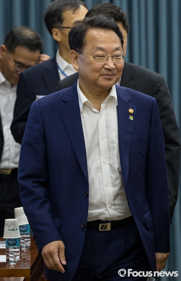 (서울=포커스뉴스) 22일 오후 서울 종로구 정부서울청사에서 열린 경제관계장관회의에 참석한 유일호 경제부총리 겸 기획재정부 장관이 자리로 향하고 있다.