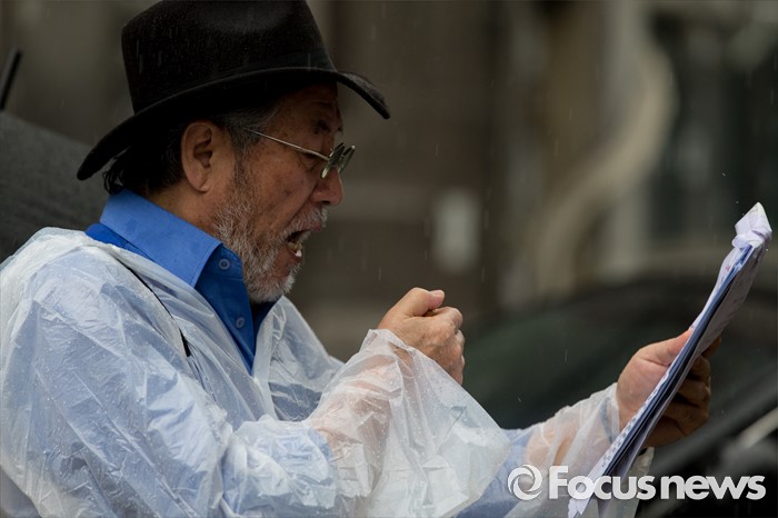 (서울=포커스뉴스) 22일 오후 서울 중구 신당동 김종필 전 총리 자택 앞에서 일제 강제동원희생자유가족협동조합 및 아시아태평양 전쟁희생자 한국유족회 회원들이 '한일협정 당시 일본외상 오히라 와 메모로 합의한 역사의 진실을 밝힐 것'을 촉구하고 있다.