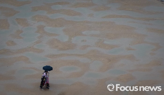 (서울=포커스뉴스) 중부지방에 첫 장맛비가 내리는 22일 오후 서울 경복궁에서 관광객들이 빗줄기 속에 나들이를 즐기고 있다. 기상청은 이번 장마전선이 오늘 밤 다시 남하해 비가 소강상태를 보였다가 모레 다시 북상할 것으로 전망했다.