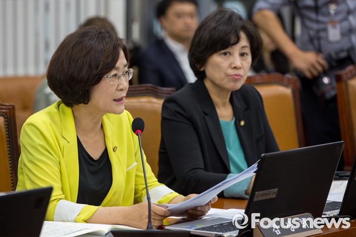 (서울=포커스뉴스) 김상희 국회 보건복지위원회 더불어민주당 위원이 22일 오후 서울 여의도 국회에서 열린 '보건복지위원회 전체회의'에 참석해 문형표 국민연금공단 이사장에게 2015년 메르스 사태 당시 보건복지부 장관을 중간에 사퇴한 이유로 국정감사 출석에 불응한 것과 메르스 사태 미수습에 대해 사과할 것을 요구 하고 있다.