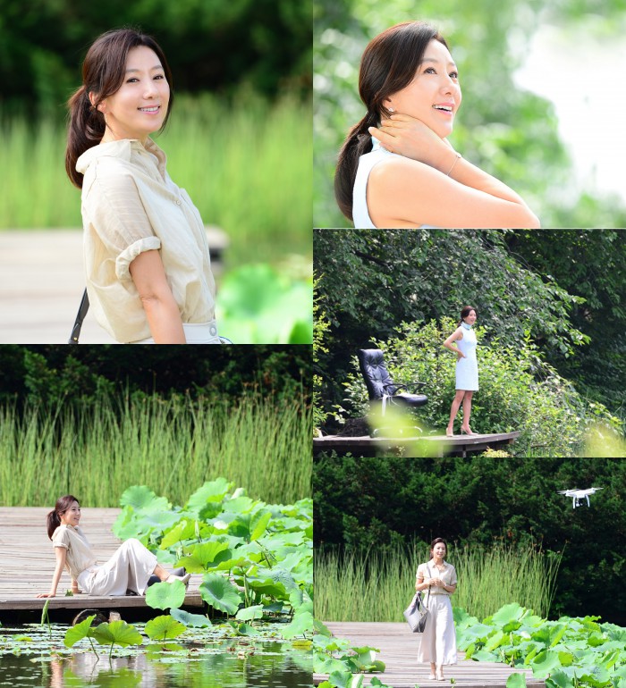 김희애는 이날 '다시 태어난 기분으로 마음껏 자연을 만끽하며 둘러본다'는 대본 속 지문에 맞춰 연기를 펼쳤다. 의자에서 일어나 숨을 크게 들이마시면서 미소 짓고, 폭포 옆을 자연스럽게 걷는가 하면 나무 바닥에 앉은 뒤 연꽃을 만지면서 행복해하는 모습을 보였다.