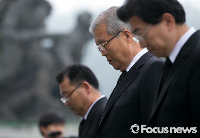 (서울=포커스뉴스) 김종인 더불어민주당 비대위 대표와 의원들이 22일 오후 서울 동작구 국립서울현충원 내 국방부 유해발굴감식단 방문에 앞서 현충탑 참배를 하고 있다.