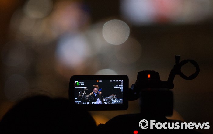 (서울=포커스뉴스) 22일 오후 서울 종로구 홍익대학고 대학로 아트센터에서 열린 뮤지컬 '올슉업' 프레스콜에 한 취재진이 극중 엘비스역할을 맡은 배우 최우혁을 촬영하고 있다.