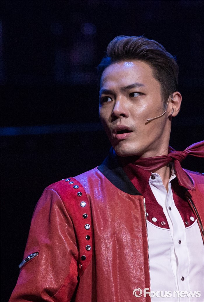 (서울=포커스뉴스) 22일 오후 서울 종로구 홍익대학고 대학로 아트센터에서 열린 뮤지컬 '올슉업' 프레스콜에 참여한 배우 휘성이 주요장면을 시연하고 있다.