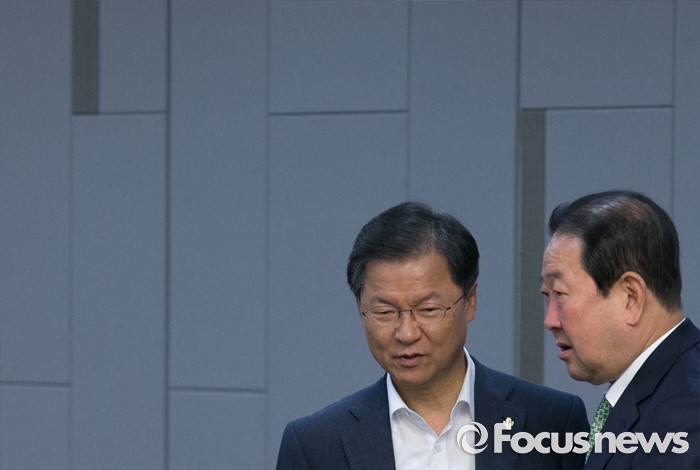 (서울=포커스뉴스) 23일 오전 서울 여의도 국회에서 열린 국민의당 19차 정책역량강화 워크숍에 참석한 천정배(왼쪽) 공동대표, 박주선 국회 부의장이 대화하고 있다.