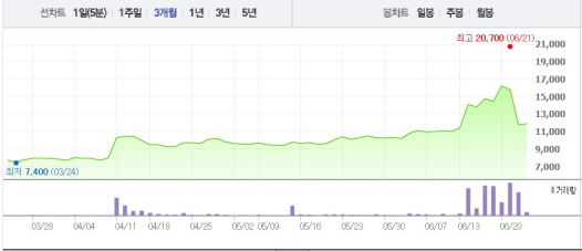 앞서 보광산업은 “최대주주 박병준씨가 채무 불이행시 소유 주식을 담보로 제공하고 최대주주를 변경하는 계약을 체결했다”고 17일 공시했다. 박병준씨의 현재 보유 지분은 9.9%이고 담보권을 전부 실행할 경우 지분율은 5.31%로 낮아진다.주가흐름<사진출처=네이버 캡쳐>