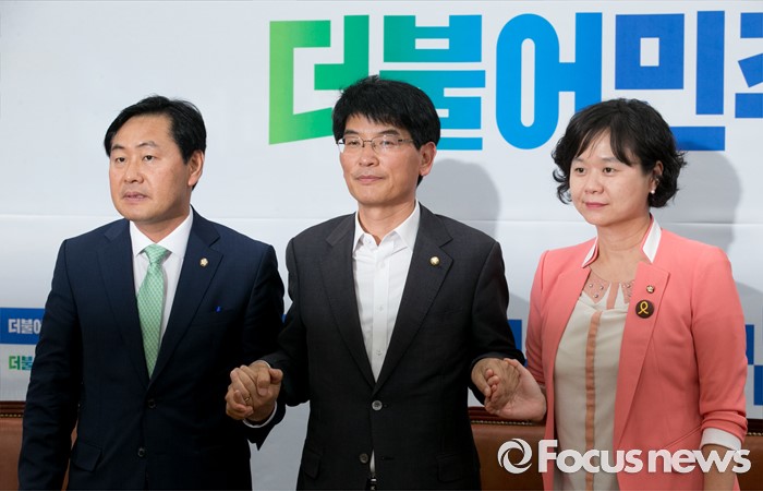 이정미 정의당 원내수석부대표는 "국가보훈처는 (입장을 내고) 13년에 공수11여단이 광주 시가 행진을 참여했을 때 아무 문제제기를 하지 않다가 지금 문제 삼는 게 이해되지 않는다고 했는데, 당시 11여단의 참여 자체를 시민 어느 누구도 몰랐다"며 "국민께 공개하지 않고 있을 수 없는 시가 행진을 여러차례 반복한 게 더 문제임에도 깊이 사과해야 할 보훈처가 가당치 않은 변명으로 해임을 회피하면 안 된다"고 날을 세웠다.왼쪽부터 김관영 국민의당 원내수석부대표, 박완주 더불어민주당 원내수석부대표, 이정미 정의당 원내수석부대표. 박동욱 기자