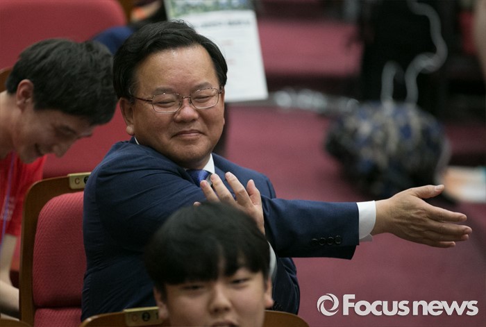 (서울=포커스뉴스) 전당대회 불출마를 선언하고 대권 도전을 시사한 김부겸 더불어민주당 의원이 23일 오전 서울 여의도 국회 의원회관에서 열린 대학생리더십 아카데미에 참석해 스트레칭을 하고 있다.