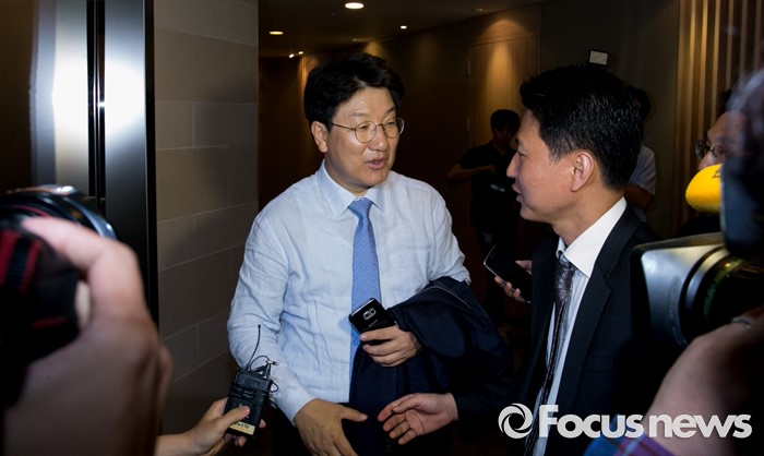 (서울=포커스뉴스) 사무총장직을 사퇴한 권성동 새누리당 의원이 23일 오후 서울 여의도 한 음식점에서 진행된 비상대책위원들과의 오찬 모임에 참석하며 취재진 질문에 답하고 있다.