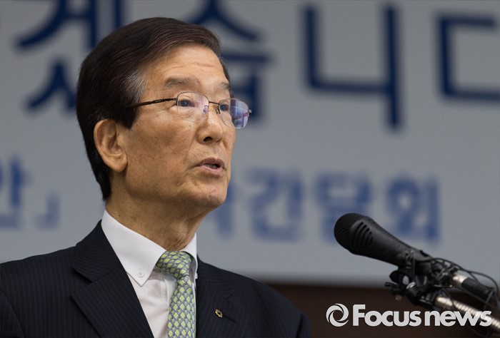 (서울=포커스뉴스) 23일 오후 서울 영등포구 KDB산업은행 본점에서 열린 산업은행 혁신 추진방안 기자간담회에 참석한 이동걸 KDB산업은행 회장이 혁신 추진방안을 발표하고 있다.