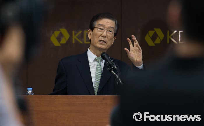 (서울=포커스뉴스) 23일 오후 서울 영등포구 KDB산업은행 본점에서 열린 산업은행 혁신 추진방안 기자간담회에 참석한 이동걸 KDB산업은행 회장이 취재진 질문에 답변하고 있다.