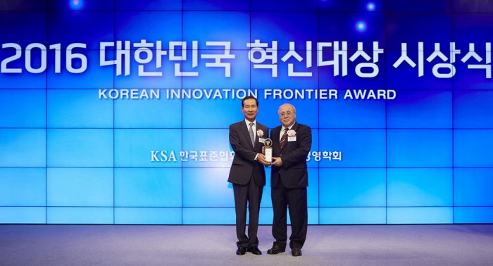 (서울=포커스뉴스) 종합가전 기업 신일산업이 23일 서울 종로 JW 메리어트 동대문스퀘어에서 열린 '2016 대한민국 혁신대상' 시상식에서 트윈회전 스팀청소기 '롤링스턴'으로 제품 혁신 대상을 수상했다.