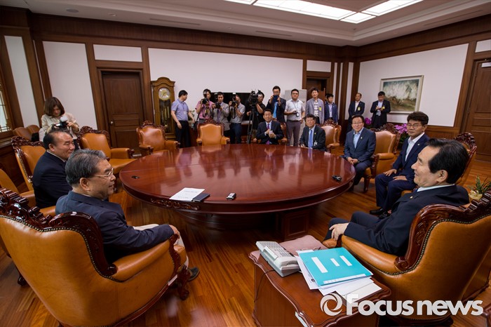 (서울=포커스뉴스) 정세균 국회의장과 이재정 경기도교육감이 23일 오후 서울 여의도 국회에서 면담 하고 있다.