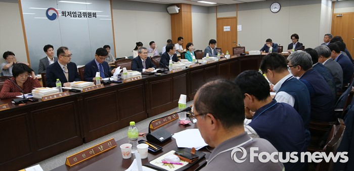 (세종=포커스뉴스) 박준성 최저임금위원회 위원장이 23일 오후 세종시 정부세종청사 고용노동부 최저임금위원회 전원회의실에서 열린 5차 전원회의를 주재하고 있다.