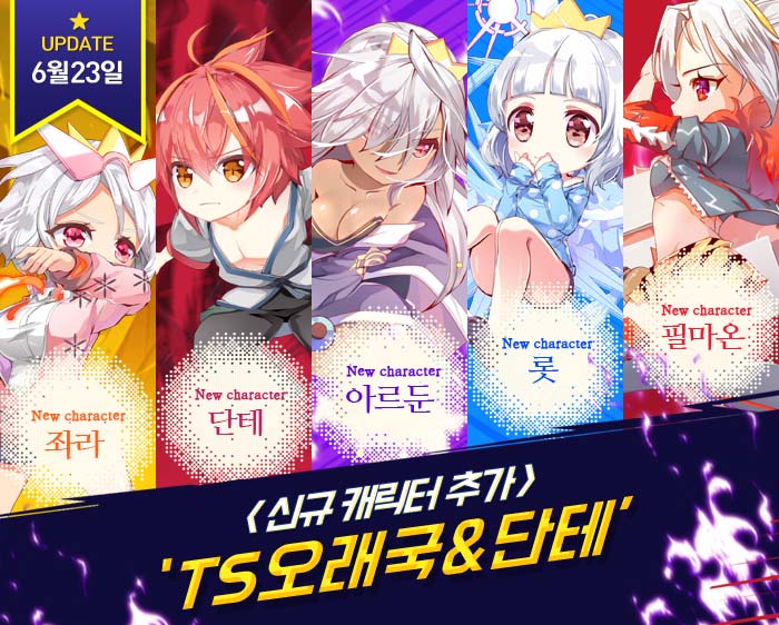 이번에 선보인 업데이트에는 오래국 캐릭터인 '심판의 아르둔', '과감한 발걸음 좌라', '작은 눈송이 롯', '깊은 눈빛의 필마온'이 여성형 캐릭터의 모습으로 새롭게 등장한다. 해당 캐릭터들은 오는 30일까지 이벤트 뽑기를 통해 획득할 수 있다. 더불어 신규 캐릭터로 ‘단테’를 선보여 수집욕을 자극할 예정이다.
