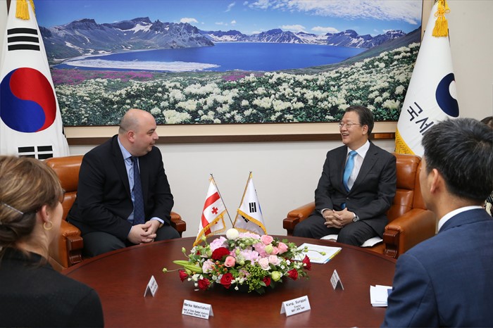(세종=포커스뉴스) 임환수 국세청장이 23일 국세청에서 라사 토디아 조지아공화국 감사원장과 접견하고 있다. <사진제공=국세청>