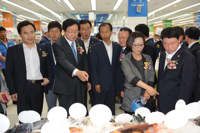(춘천=포커스뉴스) 김영석 해양수산부장관이 23일 강원도 춘천시 효자동 수산물종합유통센터 준공식에 참석해 내부시설을 둘러보고 있다. <사진제공=해양수산부>