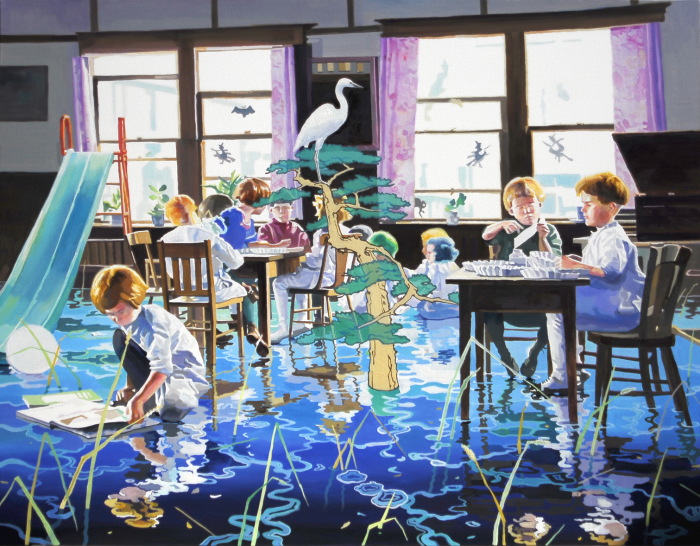 윤상윤 작가는 인간의 자아를 몽환적인 배경과 상징적 이미지로 구현해 영국과 상해, 뉴욕 등 국제무대에서 주목받고 있다. 그의 작품에 늘 등장하는 반쯤 잠긴 물의 공간에 익명의 집단이 무엇인가의 행위를 하고 있는 초현실적 장면들은 사회 집단의 울타리에 편입되기 위해 욕망을 억압하고 자아를 은폐하는 현대인의 군상을 드러낸다.