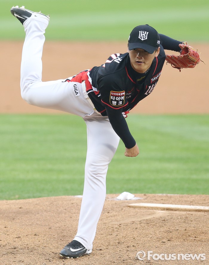 (서울=포커스뉴스) 23일 서울 잠실구장에서 열린 2016 프로야구 kt-두산 경기에서 1회말 kt 선발투수 주권이 투구하고 있다.