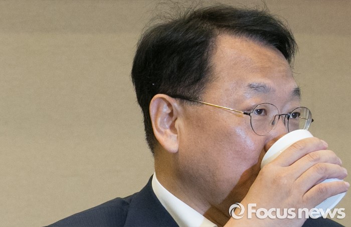 (서울=포커스뉴스) 24일 오전 서울 여의도 국회 귀빈식당에서 열린 2016년 하반기 경제정책방향 당정간담회에 참석한 유일호 경제부총리 겸 기획재정부 장관이 물을 마시고 있다.