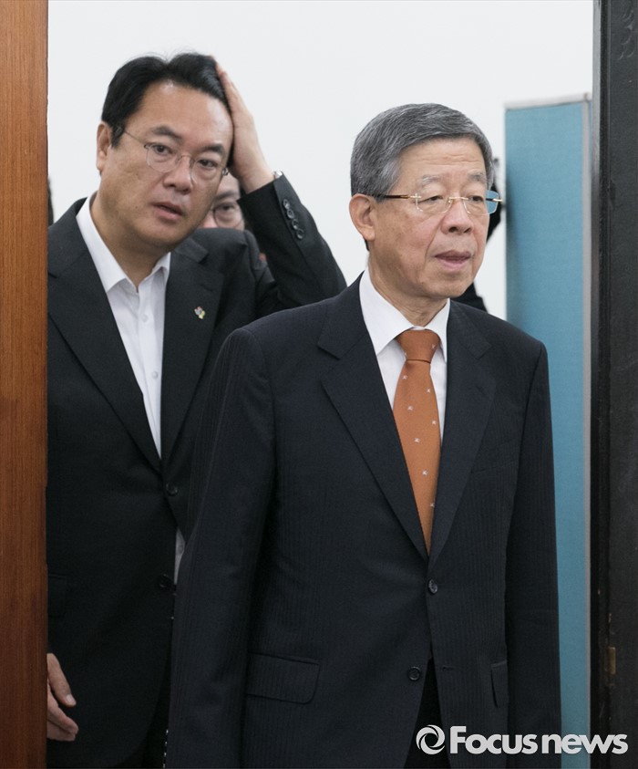 (서울=포커스뉴스) 24일 오전 서울 여의도 국회에서 열린 북한 미사일 발사 관련 국방부 현안보고에 김희옥(오른쪽) 새누리당 혁신비대위원장과 정진석 원내대표가 참석하고 있다.