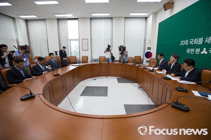 (서울=포커스뉴스) 황인무(왼쪽 두 번째) 국방부 차관이 24일 오전 서울 여의도 국회에서 국민의당 지도부에 북한 미사일 발사 관련 현안보고 하기 위해 준비 하고 있다.