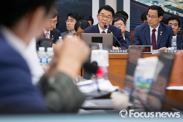 (서울=포커스뉴스) 강호인 국토교통부 장관이 24일 오전 서울 여의도 국회에서 열린 국토교통위원회 전체회의에 출석해 의원들의 질문에 답하고 있다.