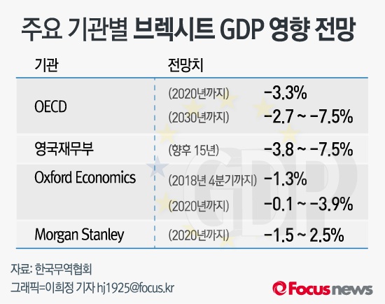 (서울=포커스뉴스) OECD, 영국 재무부 증 주요 경제기관들은 영국이 EU를 탈퇴할 경우 GDP가 단기적으로는 1.3~3.3%, 중장기적으로는 0.1~7.5% 후퇴할 것으로 보고 있다.