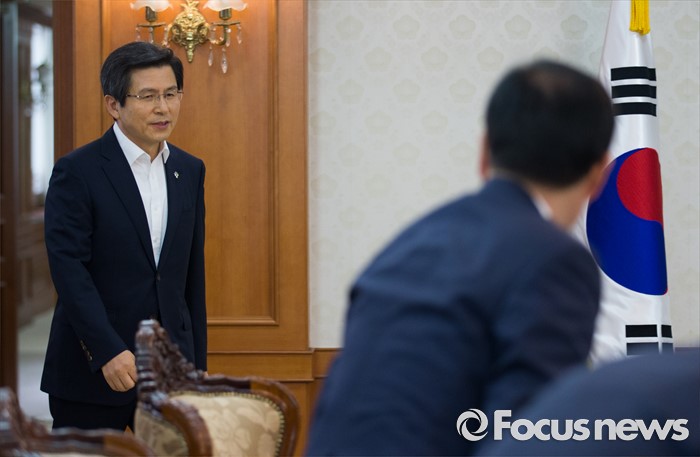 (서울=포커스뉴스) 황교안 국무총리가 24일 오후 서울 종로구 정부서울청사에서 영남권 신공항 백지화 관련 대구지역 국회의원들과 면담하기 위해 들어서고 있다.